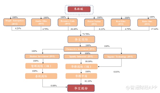 智通财经APP了解到,华宝国际的实控人为朱林瑶女士,截至2020年3月31日,朱林瑶通过间接持有华宝国际73.78%的股份,通过间接控制华烽中国,从而控制A股上市的华宝股份合计81.18%的股权。