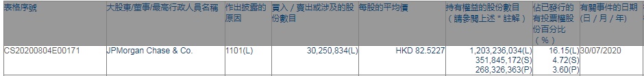 智通财经APP获悉,香港联交所最新资料显示,7月30日,摩根大通增持中国平安(02318)约3025万股,每股作价82.5227港元,总金额约为24.96亿港元。增持后最新持股数目约为12.03亿股,最新持股比例为16.15%。
