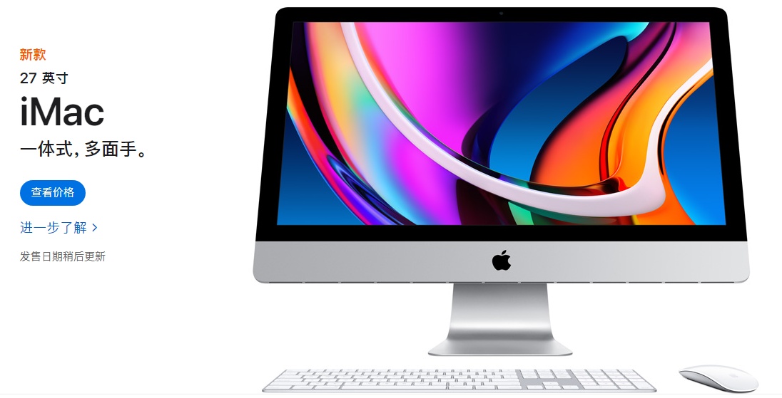 苹果在国内官网已上架该新款27寸iMac,起售价为14399元,正式发售日期有待更新。