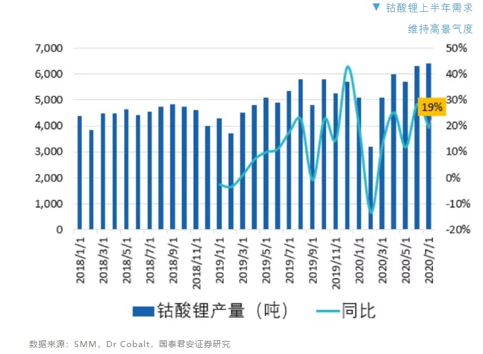 消费电池方面,中国基本未受卫生事件影响,除2月份有所影响,上半年整体生产3.1万吨钴酸锂,同比增长15%。