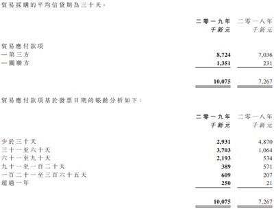 目前公司短期借款大幅增长以及应付贸易款累计,现金流压力迫在眉睫。智通财经APP了解到,已经透支422.3万新元的伟源控股,截止2019年底于一年内需偿还的短期银行贷款高达2291.8万新元,较2018年大幅增长124.2%。与此同时,公司贸易应付款方面,公司平均信贷期为30天,但是公司31-60天、61-90天、121-365天以及超过一年的应付款分别同比增长2.5倍、3.1倍、1.9倍以及10.9倍,2020年贸易应付款压力巨大。