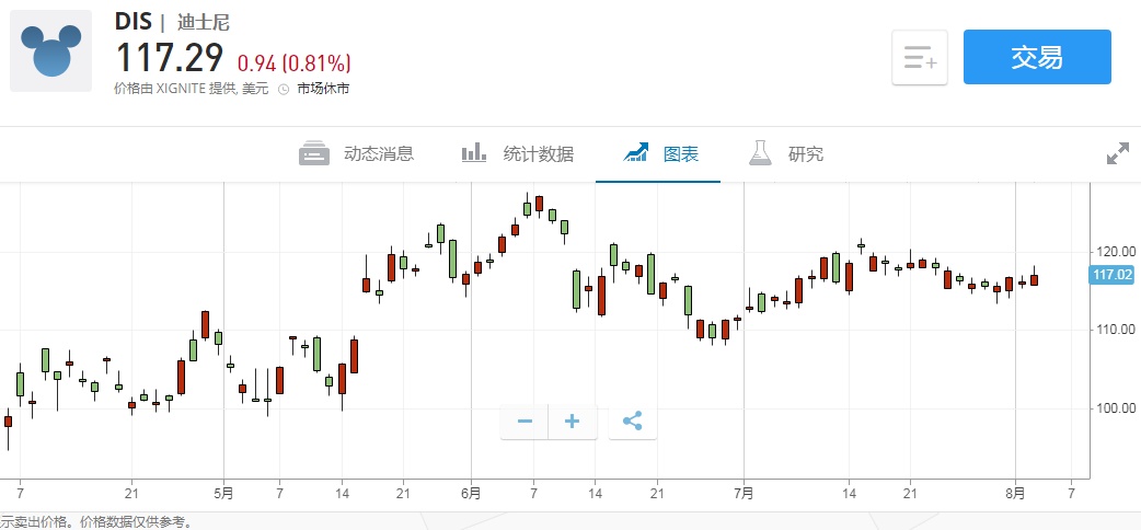 智通财经APP获悉,8月5日美股盘前,迪士尼(DIS.US)公布第三财季业绩,股价上涨,截止北京时间16:16,涨5.04%,报123.2美元。