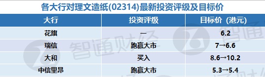 二、各大行对理文造纸(02314)最新投资评级及目标价