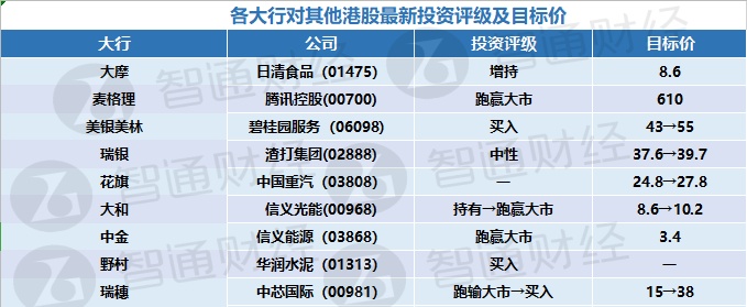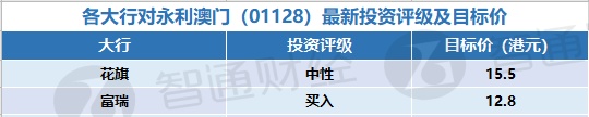 三、各大行对永利澳门(01128)最新投资评级及目标价