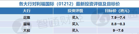 四、各大行对利福国际(01212)最新投资评级及目标价