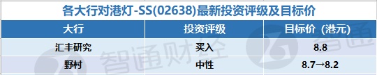 五、各大行对港灯-SS(02638)最新投资评级及目标价