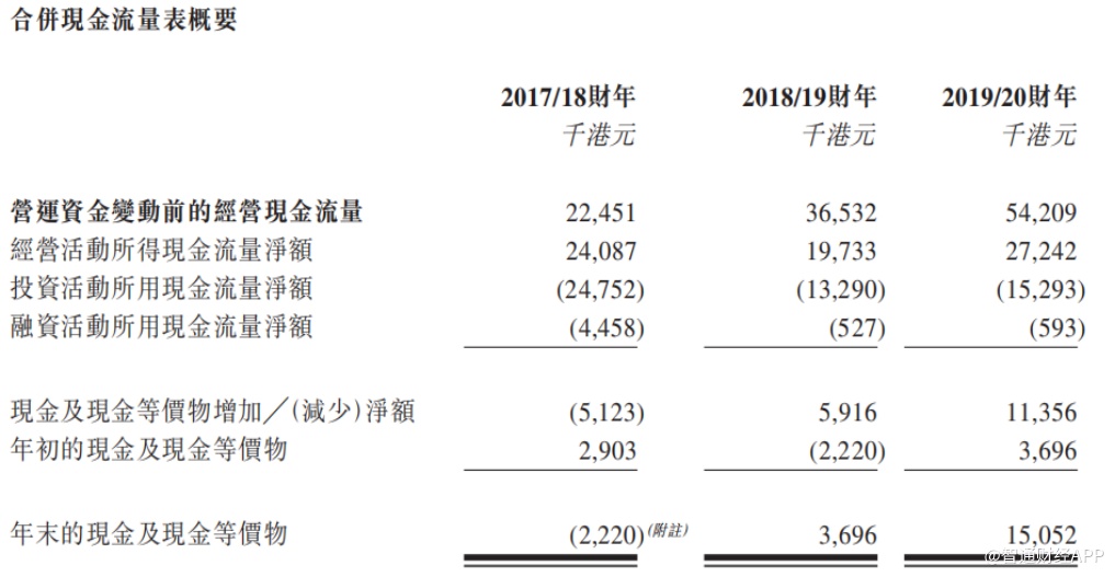 与此同时,广联工程的现金状况逐年改善,年末现金及现金等价物由2017/18财年的-220万元,提升至2019/20财年的1505.2万元。