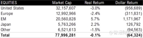 瓦利还预估未来10年,并不仅仅是美国的回报率会很差,全球股票市场的总体实际回报率很可能为负。