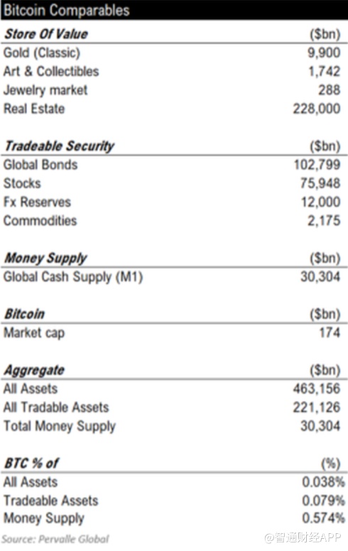 就目前而言,比特币在所有资产中约占4个基点,在可交易资产总额中约占7个基点。