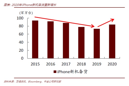 而且今年下半年苹果(AAPL.US)会首次推出5G款的iPhone机型iPhone 12,这个是我们近年来看到创新力度最大的一次,5G、OLED等功能创新,加上外观采用直角边框的设计,致敬10年前的经典iPhone 4,到时候可能会很有吸引力,同时苹果可能在定价策略上也会更加亲民,这个让iPhone 12可能成为近6年来最成功的iPhone机型,让今年下半年到明年iPhone相关的产业链也会比较好。
