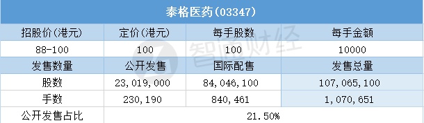 智通财经APP获悉,8月6日,泰格医药(03347)配售结束。配售招股价区间为88-100港元,最终定价100港元,每手10000港元。