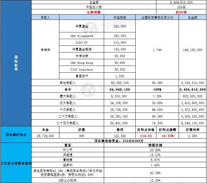 国际配售申购人数未披露,认购倍数约20倍。