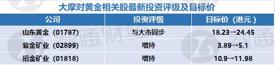 目前大摩认为招金矿业(01818)及紫金矿业为该行首选,而山东黄金在行情利好的情况下则有最多的股价上行空间。
