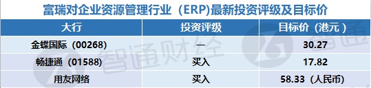 二、富瑞对企业资源管理行业(ERP)最新投资评级及目标价