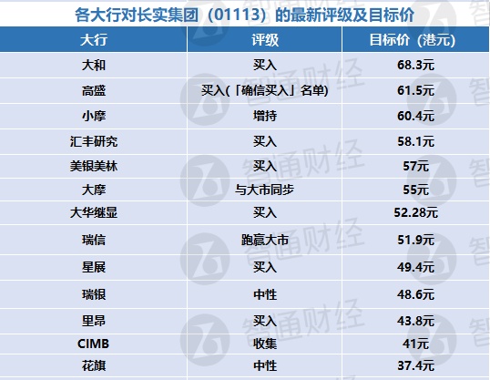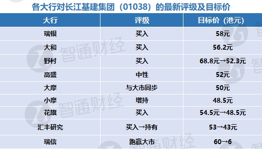 三、各大行对长江基建集团(01038)最新投资评级及目标价