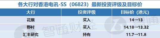 五、各大行对香港电讯-SS(06823)最新投资评级及目标价