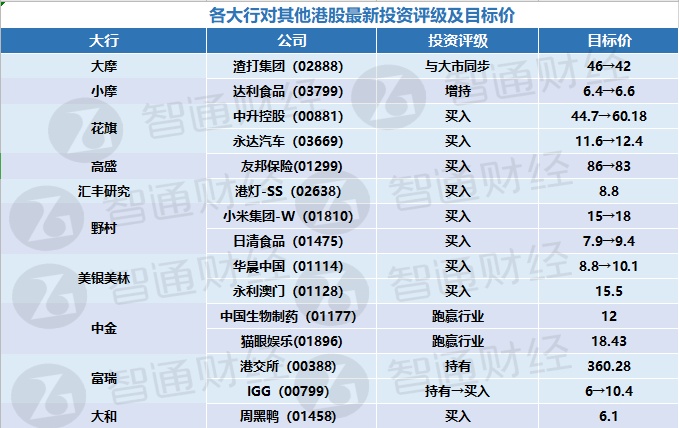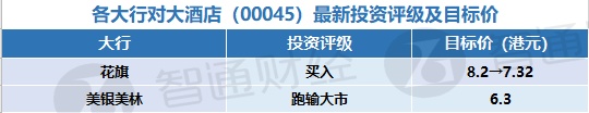六、各大行对大酒店(00045)最新投资评级及目标价