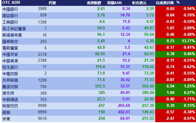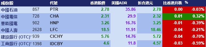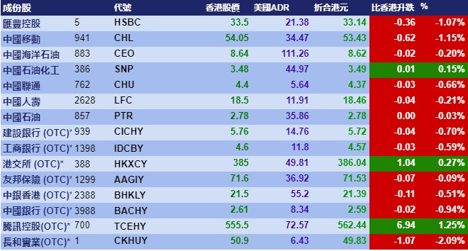 智通财经APP获悉,周四美股三大指数上涨,但港股ADR指数未能跟涨,按比例计算,收报24923点,跌7.22点0.03%。