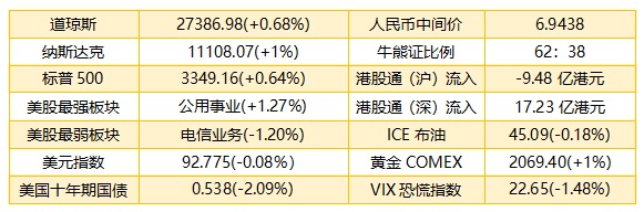 1、周四,道指小幅低开,早盘走势反复,后震荡走高。截至收盘,道指涨185.46点或0.68%,报27386.98点;纳指涨109.67点或1.00%,报11108.07点;标普500指数涨21.39点或0.64%,报3349.16点。美股三大指数上涨,但港股ADR指数未能跟涨,按比例计算,收报24923点,跌7.22点0.03%。