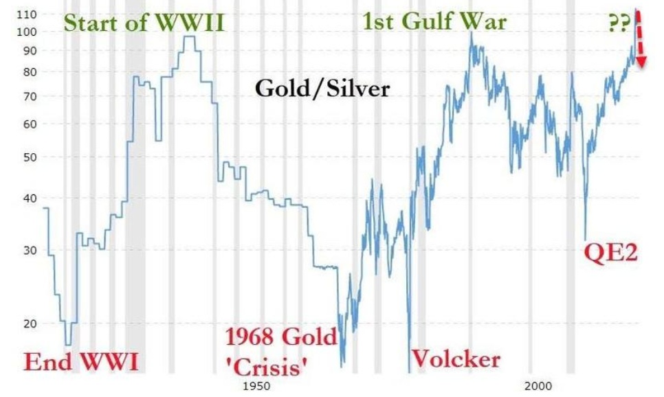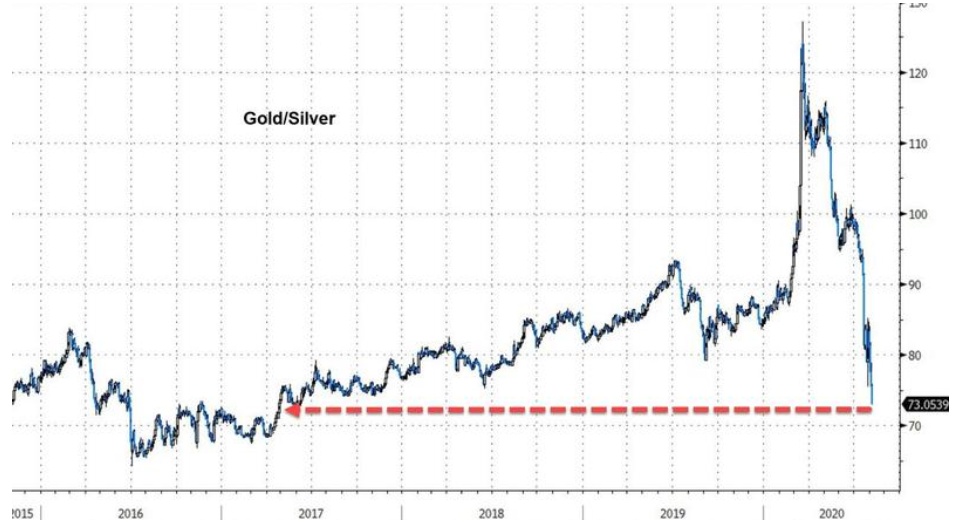 银金比就是买一盎司黄金需要多少盎司白银。这几个月来一直处于历史高位。今年3月,该比率远高于100比1。