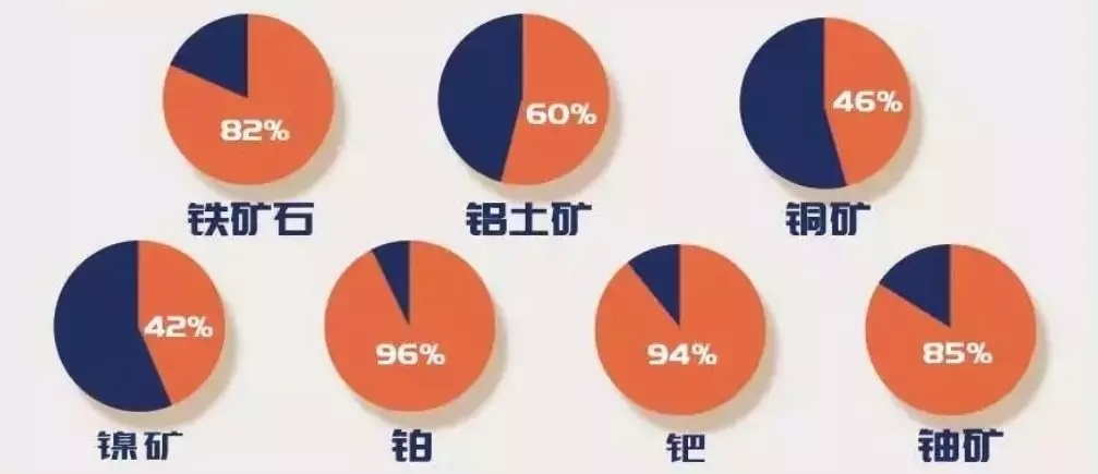 据《全球矿业发展报告2019》统计,全球2395家上市矿业公司中,大型矿业公司数量占比不足4%,但其市值占比近80%。国际大型矿业公司占有全球优质资源,各矿种前十大公司生产了全球82%的铁矿石、60%的铝土矿、46%的铜矿、42%的镍矿、96%的铂、94%的钯和85%的铀矿。