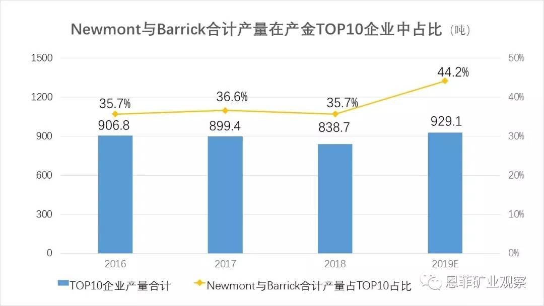 在很多人还在看两大黄金巨头“你争我夺,抢占全球黄金龙头地位”的好戏之际,两家黄金公司合计产量在全球产金TOP10企业中的占比已高达44.2%,其他巨头已然望尘莫及!