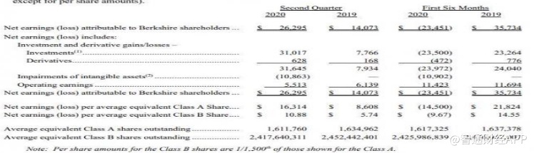 在计入其所投资的股票帐面盈利后,该公司二季度净利润为262.95亿美元,同比增长86.8%,折合每股A类股EPS为16314美元;去年同期为141亿美元,折合每股A类股8608美元。