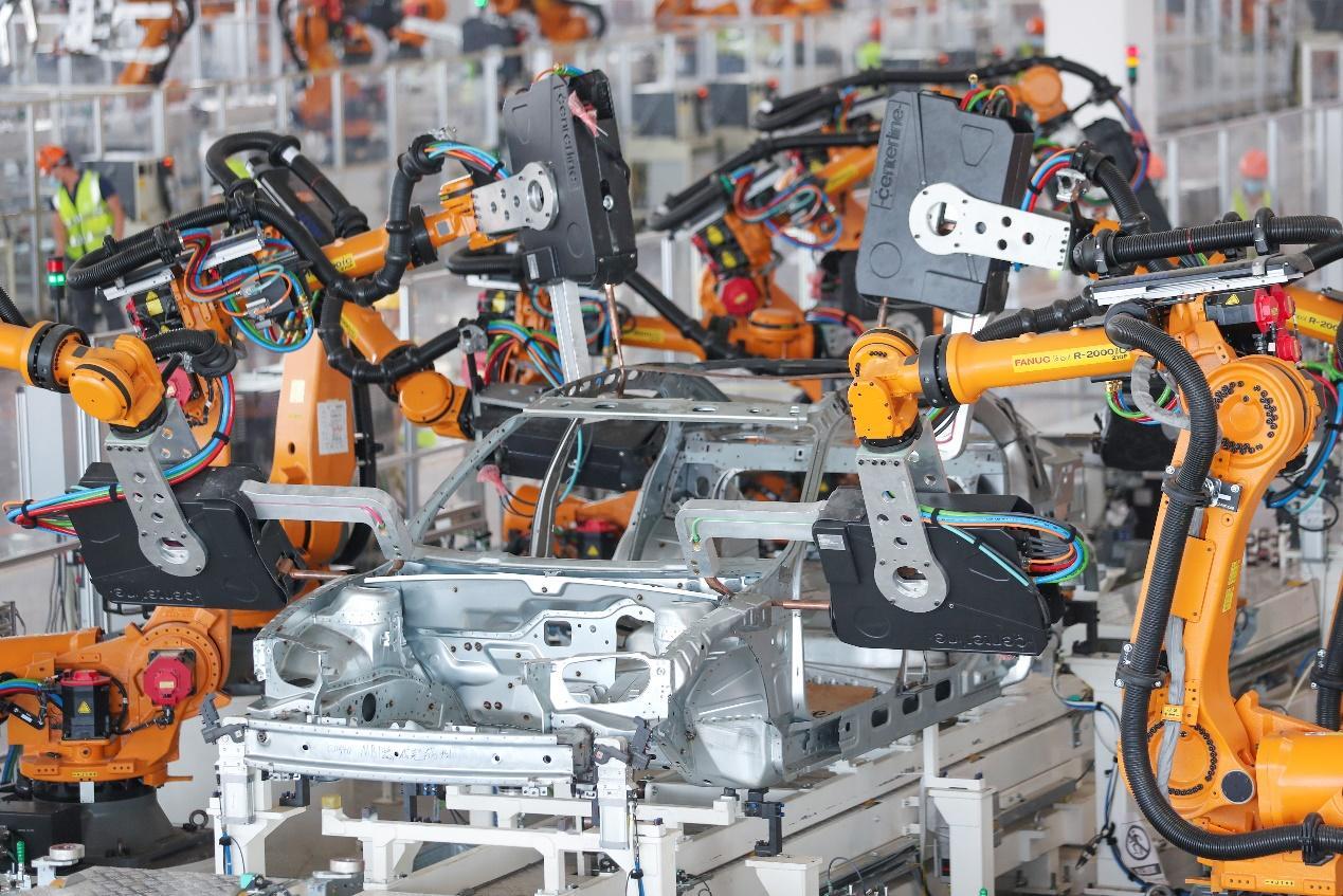 “多才多艺”的智能机器人在恒大汽车生产基地大显身手:在车身车间,巨型机械臂能精确地执行点焊、铆接、胶合等工作,每一步都分毫不差;在涂装车间,喷漆机器人拥有可弯曲机械臂,能全方位、不留死角地完成自动喷漆任务;在装配车间,机械臂能连续快速地安装车门、车轮等重要零部件。智能化的投入可实现24小时全自动作业,让这里成为世界最先进的高端智能“黑灯工厂”。