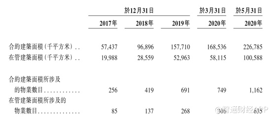 业绩高增长,也归功于公司合约建筑面积的大幅度增长。自2017年12月31日至2020年5月31日,融创服务的合约建筑面积由5744万平米大幅增长至2.27亿平米,实现复合年增长率76.5%;同期在管建筑面积亦由1999万平米大幅增长至1.01亿平米,实现复合年增长率95.2%。