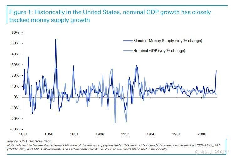 从历史上看,美国名义GDP增长与货币供应量增长密切相关