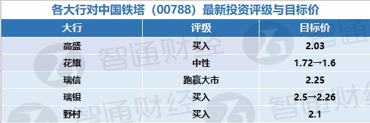 四、各大行对中国铁塔(00788)最新投资评级与目标价
