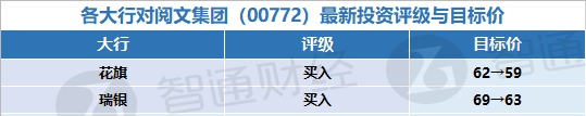 六、各大行对阅文集团(00772)最新投资评级与目标价