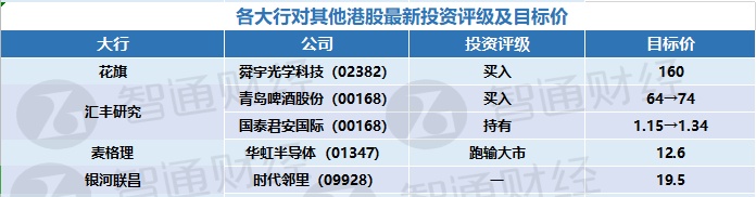 三、各大行对万洲国际(00288)最新投资评级与目标价