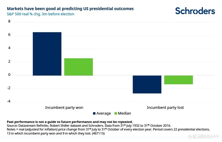 然而,资产管理集团施罗德(Schroders)分析师Sean Markowicz的研究表明,这种假设为时过早。他认为从历史上看,没有任何一个政党对市场完全有利或不利。