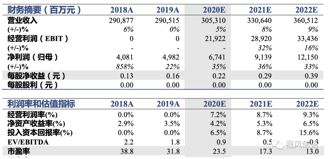 维持“增持”评级。维持公司2020-2022年归母净利润预测为67.4亿元、91.4亿元和121.5亿元,对应2020-2022年EPS为0.22元、0.29元和0.39元。维持目标价7.39元和“增持”评级不变。