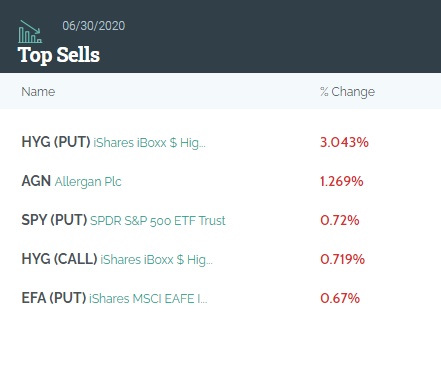 花旗前五大卖出股分别是:iShares iBoxx 高收益公司债券指数ETF看跌期权(HYG.US,PUT)、艾尔建(AGN.US)、标普500指数ETF看跌期权、iShares iBoxx 高收益公司债券指数ETF看涨期权和欧澳远东指数ETF-MSCI看跌期权(EFA.US,PUT)。