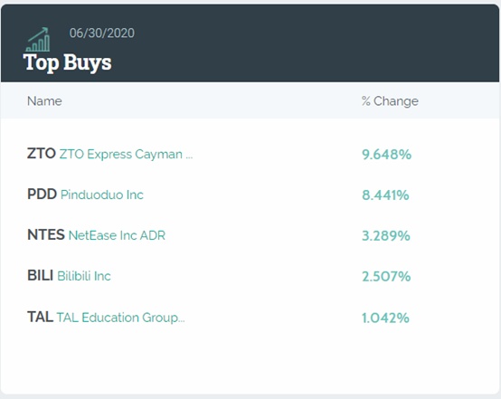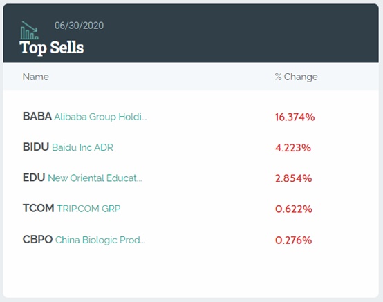 前五大卖出股如下图,其中包括阿里巴巴、新东方(EDU.US)、携程网(TCOM.US)、泰邦生物(CBPO.US)。