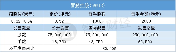 智通财经APP获悉,8月13日,智勤控股(09913)配售结束。配售招股价0.52-0.64港元,最终定价0.52港元,每手2080港元。