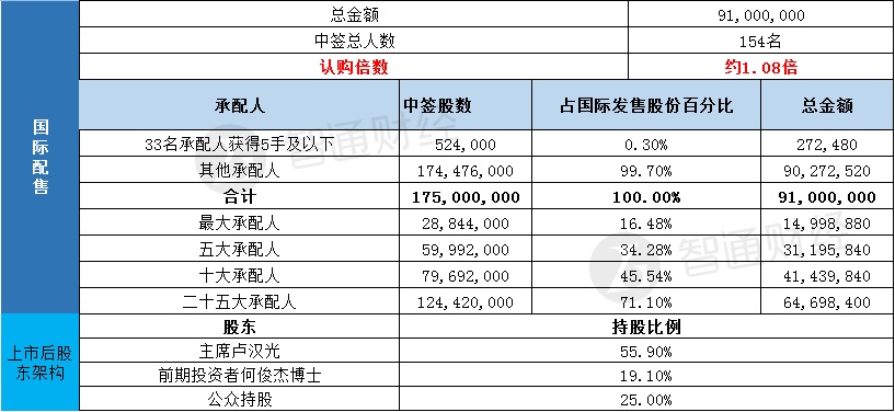 国际配售申购人数未披露,认购倍数约1.08倍。