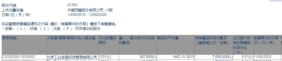 智通财经APP获悉,香港联交所最新资料显示,8月11日,北京工业发展投资管理有限公司减持中国同辐(01763)39.76万股,每股作价31.0015港元,总金额为1232.62万港元。减持后最新持股数目为760.88万股,最新持股比例为9.51%。