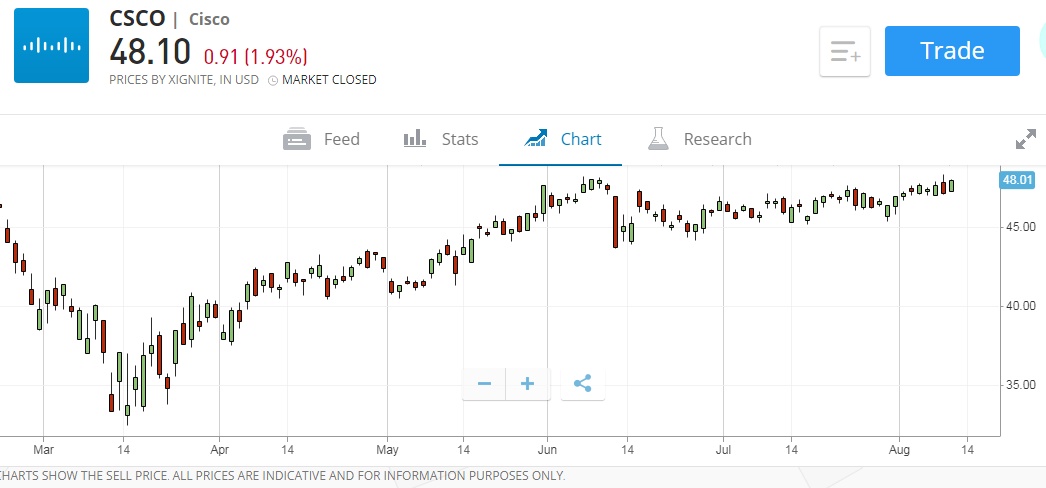 智通财经APP获悉,8月13日(周四)美股盘前,截至16:04,思科(CSCO.US)跌6.03%,报45.2美元。