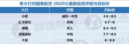 二、各大行对国泰航空 (00293)最新投资评级与目标价