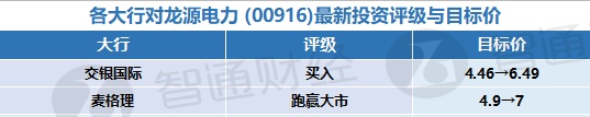 三、各大行对龙源电力 (00916)最新投资评级与目标价