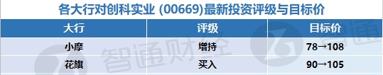 四、各大行对创科实业 (00669)最新投资评级与目标价