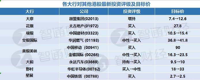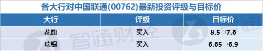 五、各大行对中国联通(00762)最新投资评级与目标价