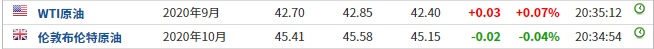 截至发稿,WTI原油涨0.07%,报42.70美元/桶。布伦特原油跌0.04%,报45.41美元/桶。