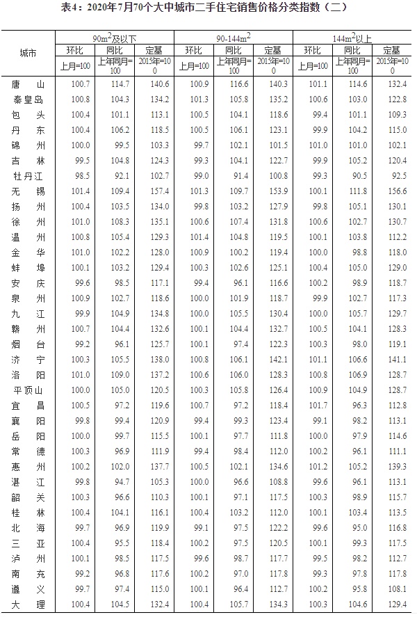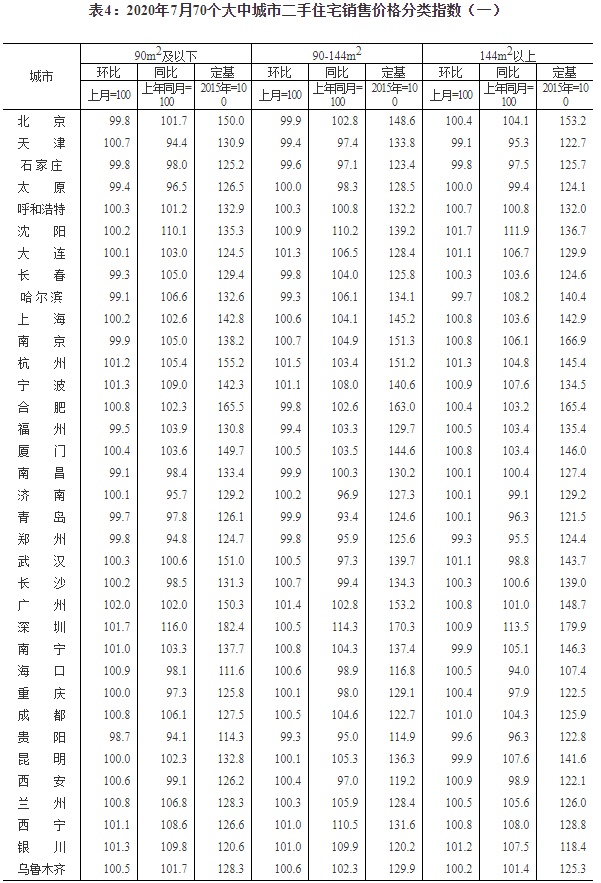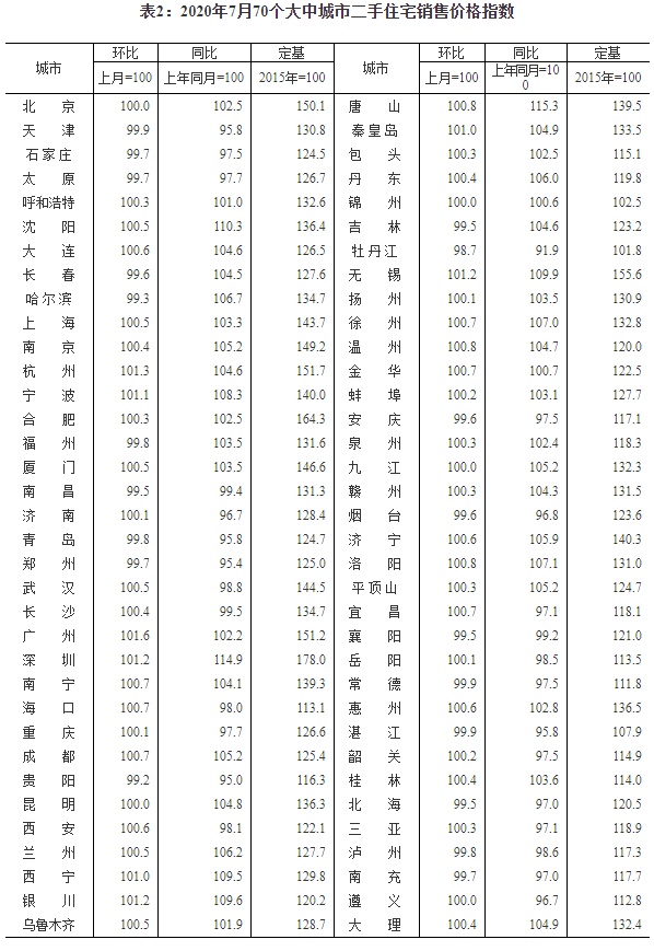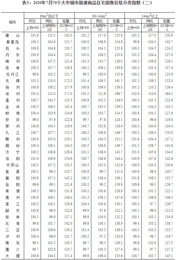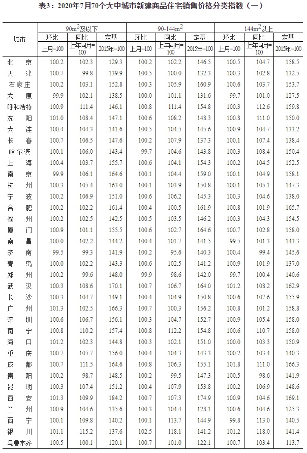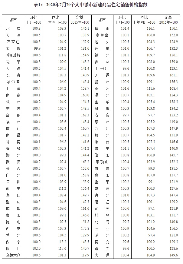智通财经APP获悉,8月14日(周五),国家统计局公布了2020年7月份70个大中城市商品住宅销售价格变动情况。