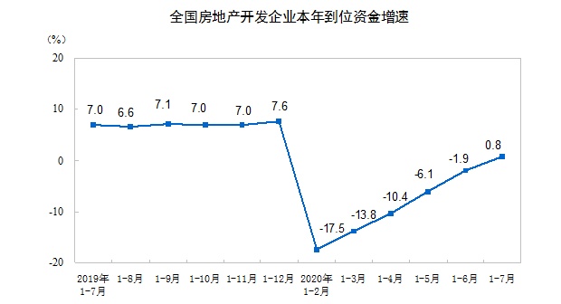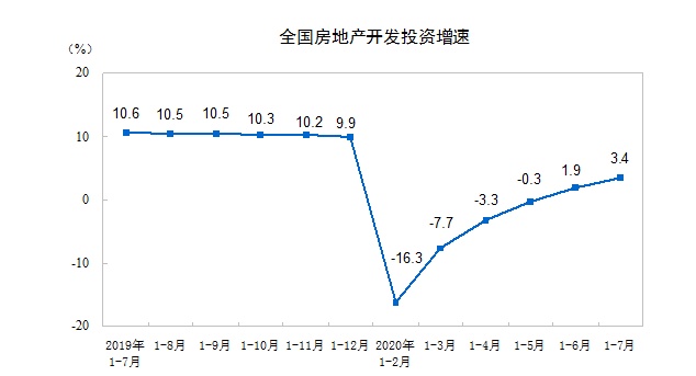 智通财经APP获悉,统计局今日公布,2020年1—7月份全国房地产开发投资和销售情况。