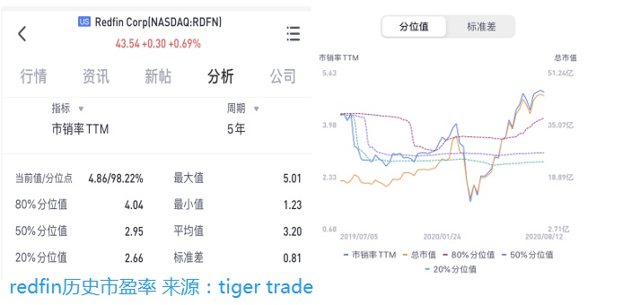 但归根结底,贝壳首日大涨87%的基础在于定价中性。每份ADS 20美元的最终发行价,对应公司估值约为230亿美元,以2019年营业收入460亿元人民币技术,市销率PS为3.47倍。可比公司估值方面,纳斯达克的Redfin与贝壳业务模型极为接近,同是自营房产经纪外加房源联卖网络平台,历史PS均值为3.2倍,最近半年来由于美国房地产销售强势增长上升到4.92倍。两家公司均是亏损企业,近三年来未实现盈利,因此对比市销率更为现实。