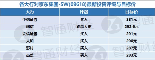 一、各大行对京东集团-SW(09618)最新投资评级与目标价